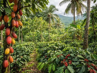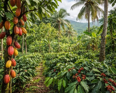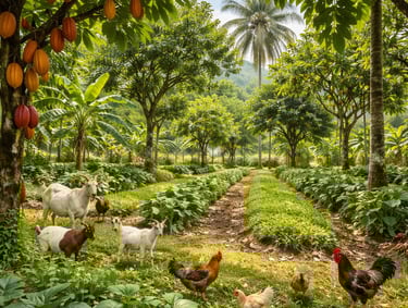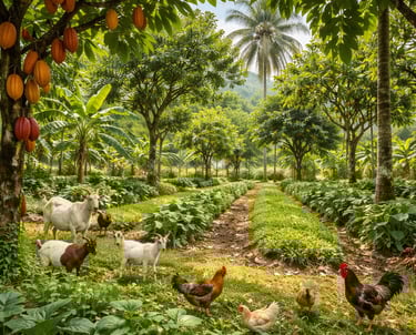 L’agroforesterie locale associe la culture d’arbres, de plantes agricoles et parfois d’élevage sur une même parcelle afin de préserver l’équilibre naturel des sols.